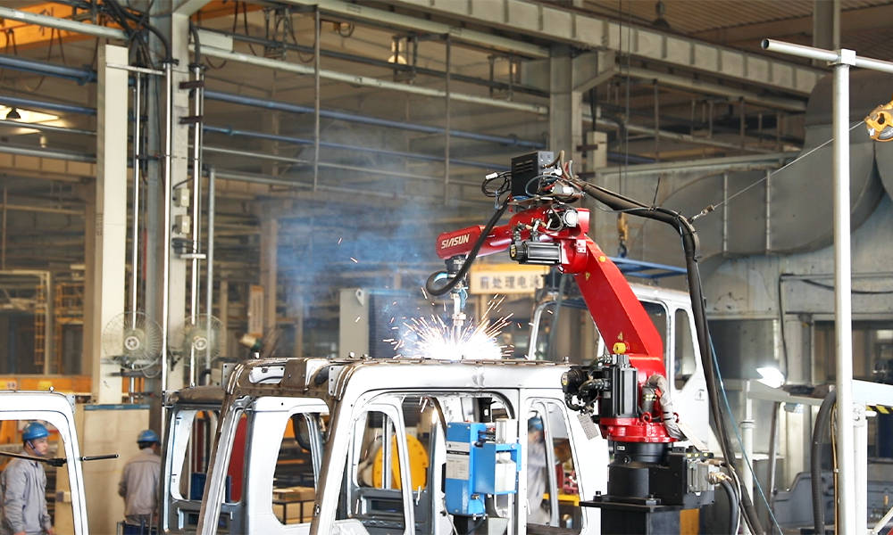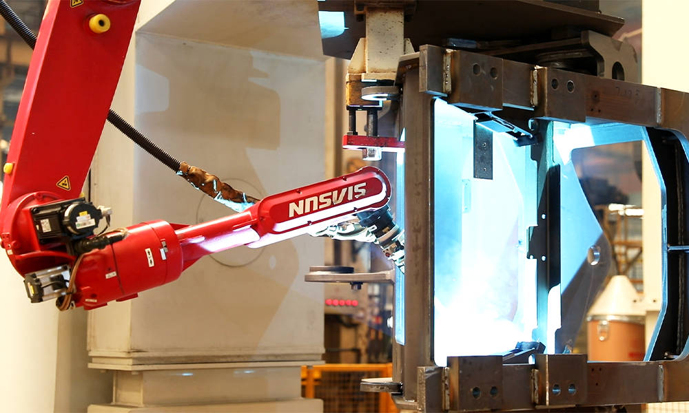 新松先后為國內工程機械行業的多個龍頭企業提供智能焊接機器人系統,實現裝載機前后車架、動臂、搖臂、駕駛室、發動機罩及挖掘機主架、下架總成、動臂、斗桿、馬達座、挖斗鏟背、駕駛室等結構件的自動焊接。