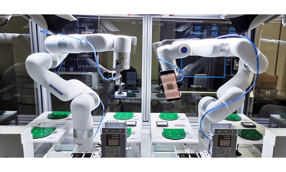 在地鐵控制中心,新松將協(xié)作機器人技術(shù)成功應用于票務測試環(huán)節(jié),打造讀寫器、票卡性能及票務參數(shù)驗證平臺。該平臺實現(xiàn)地鐵各類票卡常規(guī)業(yè)務操作的壓力測試、票卡全業(yè)務流程測試等功能,通過軟件管理系統(tǒng)進行測試中心任務下發(fā),測試結(jié)果統(tǒng)計及報表輸出,實現(xiàn)地鐵票務測試自動化。