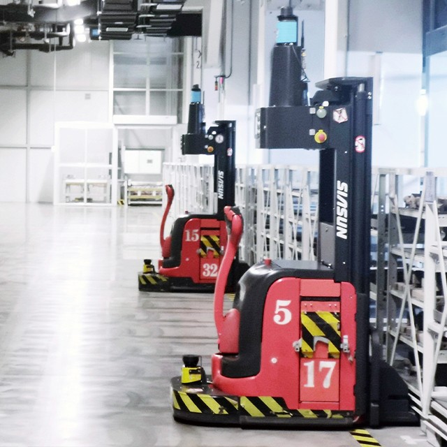 新松叉式移動機器人具備叉車的各項功能,一般采用主流叉車的本體進行改造,保持其原車的結構和剛性,加裝控制、導航、通訊等,多用于車間內無人物流作業需求。根據不同的負載及舉升高度選擇對應的叉車本體,導航方式一般選擇磁導航、激光導航或混合導航。