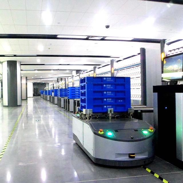 倉儲式機器人是新松公司為滿足大型倉儲廠房車間的貨架調配、分揀、整合二研發的智能應用系統,主要由AGV車體和視覺導航傳感器等組成,倉儲式機器人將裝滿貨物的貨架舉起并快速平穩的將貨架運送到指定的地方等待下一次任務。可在控制臺的調度下將貨架上面的貨品進行分類排序,將同類商品集合到同一貨架上,這樣可以減少貨物的運送時間,從而大幅度提高倉儲效率。