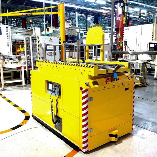通用輥道移載移動機器人是新松公司根據物料輸送的實際要求而開發設計的系列產品。其運行控制采用新松標準的移動機器人控制模式,按照驅動方式分為雙輪差動、單舵輪驅動、雙舵輪驅動;按照導航方式分為磁導航和激光導航。車體上安裝不同類型的輸送輥道實現貨物的單向自動轉載或雙向自動轉載。