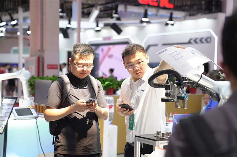 大會現場,多位行業客戶蒞臨新松展位開展業務交流,參展觀眾圍聚新松展位,熱情互動體驗!