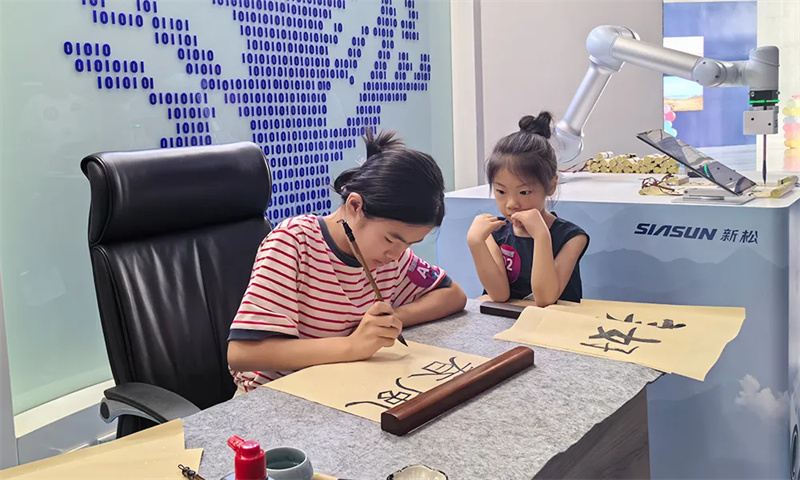也有家屬們自告奮勇,與小機器人比拼角逐、揮毫潑墨,在互動中更直觀地感受著令人興奮的創新技術。
