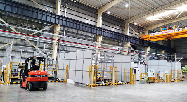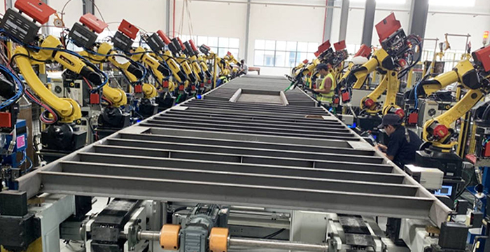 特種車業務涵蓋自卸車、骨架車、倉欄車、側翻車、廂式車、冷藏車、攪拌車的車架、廂板的焊接。新松公司根據特種車行業多品種、小批量、結構相似的特點,制定了柔性、高效、智能的解決的方案。采用信息化技術實現生產數據的管理,采用AGV實現多品種產品的地面安全周轉,采用離線編程和參數化編程及激光跟蹤技術實現產品的高效焊接。