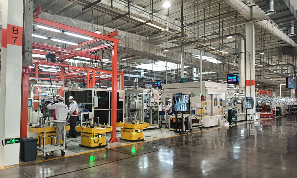 該項目為客戶量身訂做專業的發動機裝配生產線,涵括生產制造執行系統、托盤夾具、移動機器人智能周轉系統、擰緊機、打標機、回轉力矩測量機、泄漏測試機、壓裝機、翻轉機、懸掛起重機、桁架機械手系統等各種設備及專用工具。