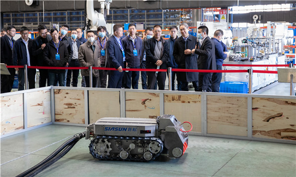 ▲ 參會代表參觀新松特種機器人創新產品